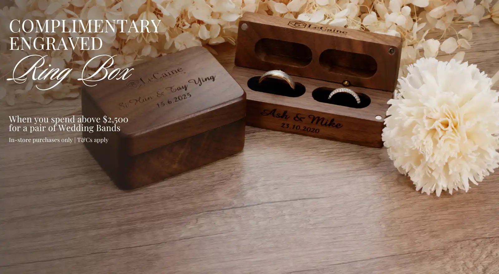 Whether you're searching for the perfect engagement ring, a pair of elegant wedding bands, or a thoughtful gift for someone special, LeCaine is here to make your journey unforgettable. Our 24/7 online jewelry shop offers a stress-free way to browse and purchase your dream jewelry, while our boutique at Millenia Walk provides an intimate, hands-on shopping experience.
